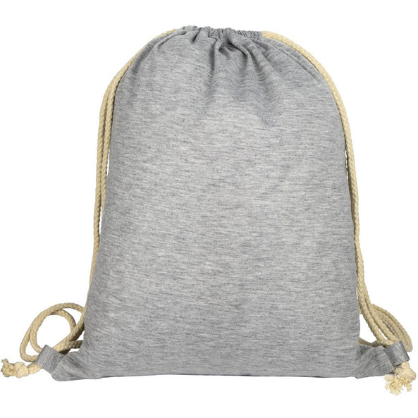 Drawstring backpack in polyester with a denim look with thick cotton handles. Simple and modern design.