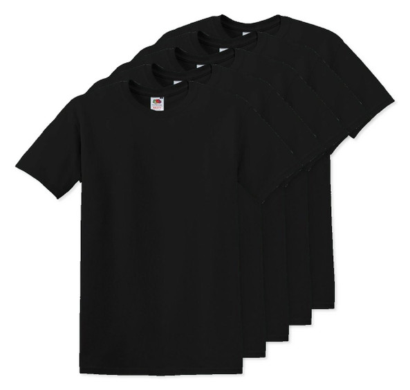 Pack of 5 Fruit of the Loom SC6 - Black - Original Full Cut T (61-082-0)