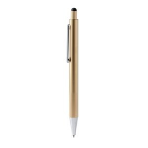 Stamina BL1770 - Gold - GARET Aluminium ballpoint pen with striped grip in metallic finish and touch pointer